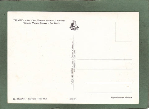 AK Tarvisio – Via Vittorio Veneto – Il mercato. Ungelaufen. Großformat. Verlag: Rassati. Foto Ghedina. Nummeriert: 333 271. Zustand: gut, leichte Läsuren.