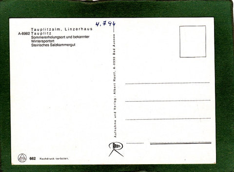 AK Tauplitz. Linzerhaus. Ungelaufen. Großformat. Verlag: Rastl. Nummeriert: 662. Zustand: gut, linkes oberes Eck angeknickt.