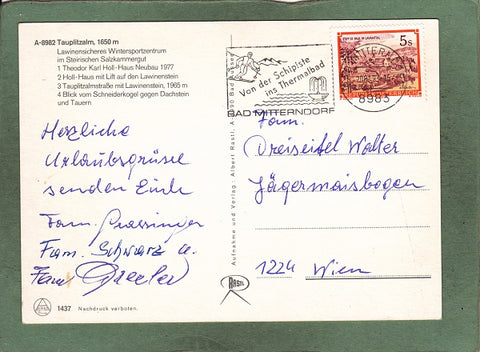 AK Tauplitzalm. Gelaufen 1993. Großformat. Verlag: Rastl. Nummeriert: 1437. Zustand: gut, untere Ecken gering angeknickt.
