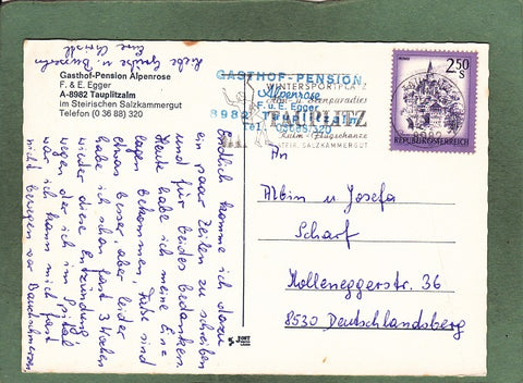 AK Tauplitzalm. Gasthof Pension Alpenrose. Gelaufen. Großformat. Verlag: Jost. Zustand: gut, Ecken und am Rand leicht angestoßen.