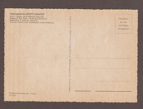 AK Übelbach. Alpengasthaus Bartlbauer. Inh. Ignaz und Helene Dorner. Neuhof 33. Ungelaufen. Großformat. Verlag: MM. Nummeriert: 1233. Zustand: gut.