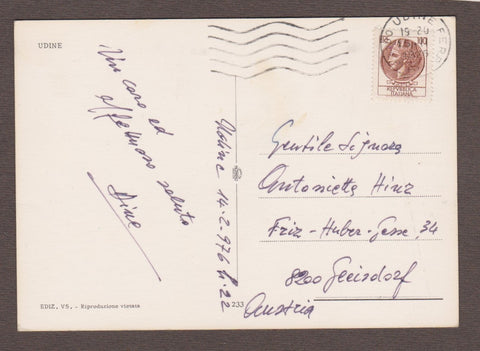 AK Udine. Piazza XX Settembre. Gelaufen 1976. Großformat. Verlag: VS. Nummeriert: 233. Zustand: linkes oberes Eck geknickt, zwei Knicke am oberen Rand in der rechten Hälfte, Knick am rechten Rand.