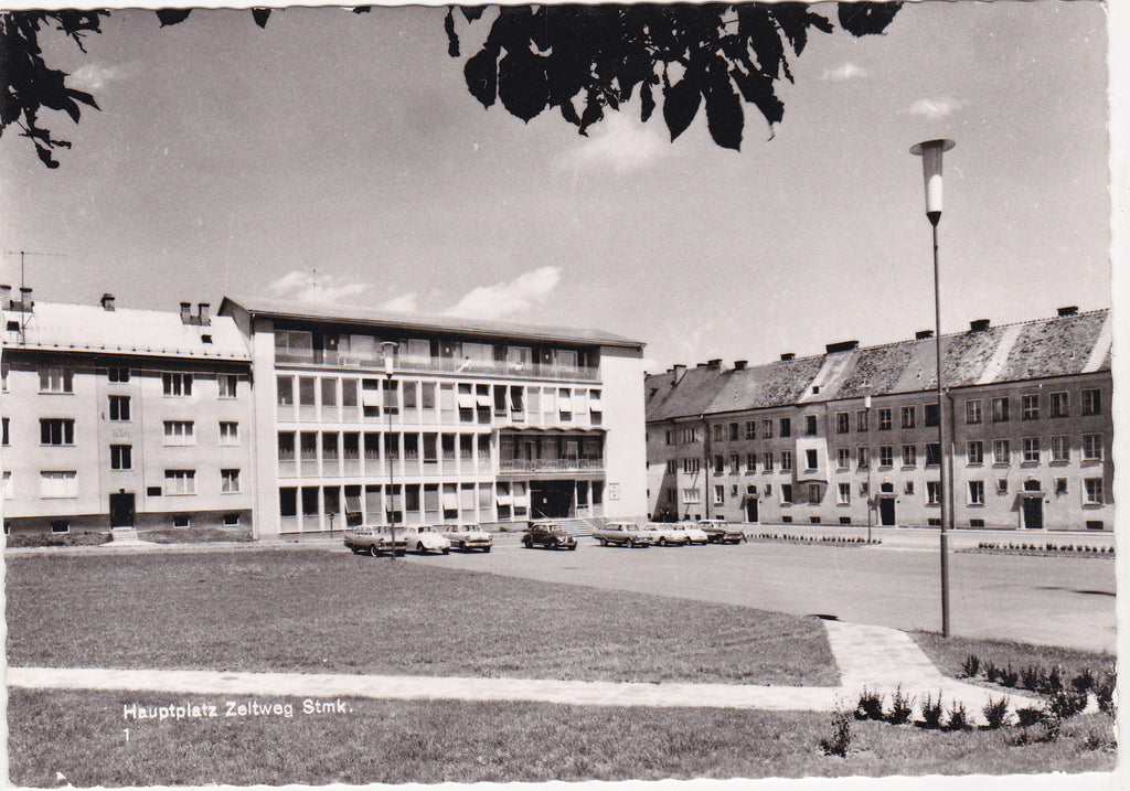 AK Zeltweg. Hauptplatz. Ungelaufen. Großformat. Verlag: Hruby. Nummeriert: 1. Zustand: gut, linkes unteres Eck angeknickt.