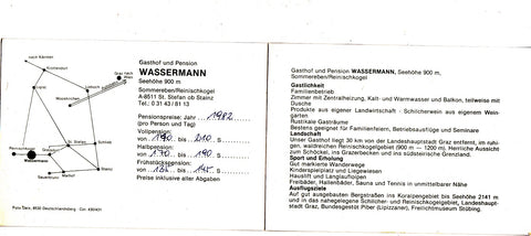 Doppel-Werbe-AK St. Stefan ob Stainz. Gasthof und Pension Wassermann. Sommereben/Reinischkogel. Ungelaufen. Großformat. Verlag: Deix. Col. 430/431. Zustand: gut.
