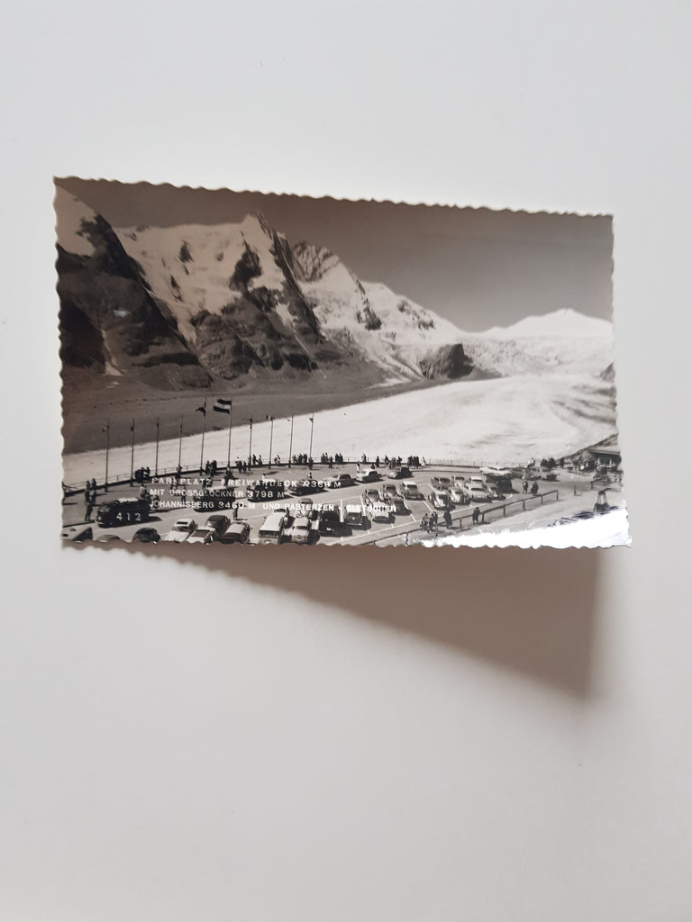 AK Parkplatz Freiwandeck mit Grossglockner Johannisberg und Pasterzen. Gelaufen. Kleinformat. Verlag: Tollinger. Nummeriert: 412. Zustand: gut.