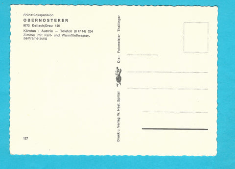 AK Dellach im Drautal 126. Frühstückspension Obernosterer. Ungelaufen. Großformat. Verlag: Nest. Nummeriert: 127. Zustand: gut, leicht bestoßen.