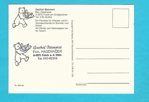 AK Fusch am Großglockner. Gasthof Bärenwirt. Bes. Hasenauer. Ungelaufen. Großformat. Verlag: Stiasny. Nummeriert: 600/84. Zustand: gut.