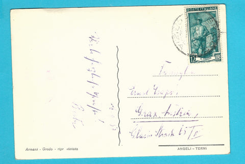 AK Saluti da Grado. Porto. Hotel Astoria. Albergo dei Bagni. Spiaggia. Gelaufen. Großformat. Verlag: Armani. Zustand: gut, linkes oberes Eck geknickt.