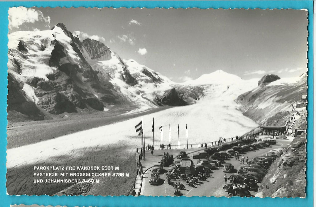 AK Parkplatz Freiwandeck Pasterze mit Grossglockner und Johannisberg. Gelaufen. Kleinformat. Verlag: Tollinger. Zustand: gut.