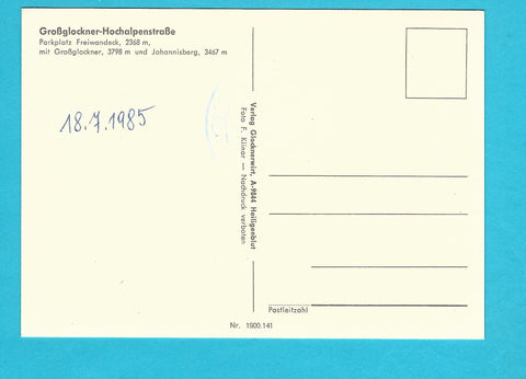 AK Grossglockner Hochalpenstrasse. Parkplatz Freiwandeck. Ungelaufen. Großformat. Nummeriert: 1900.141. Zustand: gut.