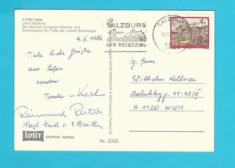 AK Grüße aus Lofer. Gelaufen. Großformat. Verlag: Cosy. Nummeriert: 2322. Zustand: rechtes oberes Eck geknickt.