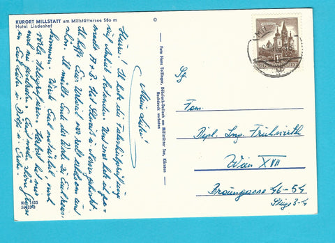 AK Millstatt. Hotel Lindenhof. Gelaufen. Großformat. Verlag: Tollinger. Nummeriert: 1433. Zustand: gut, linkes oberes Eck angeknickt.