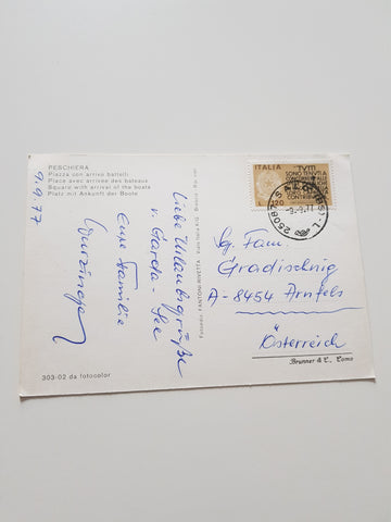 AK Peschiera. Piazza con arrivo battelli. Gelaufen. Großformat. Nummeriert: 303-02. Zustand: linkes oberes Eck geknickt, sonst leichte Läsuren.