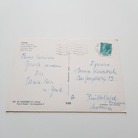 AK Verona. Arena Particolare. Gelaufen. Großformat. Verlag: Ingrosso. Nummeriert: 522. Zustand: gut.