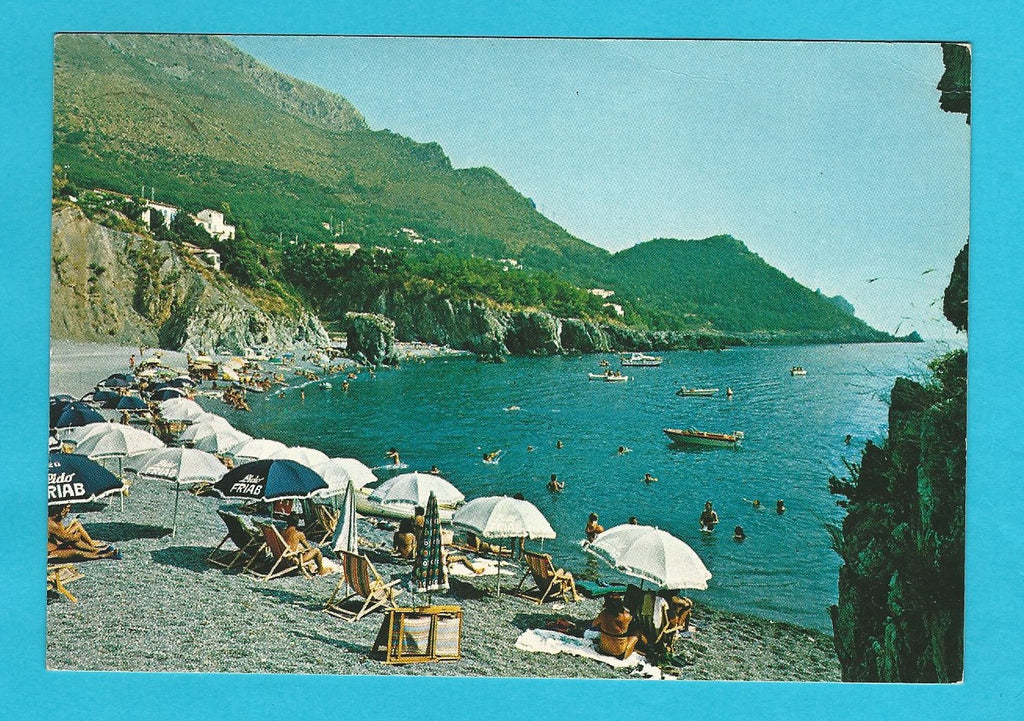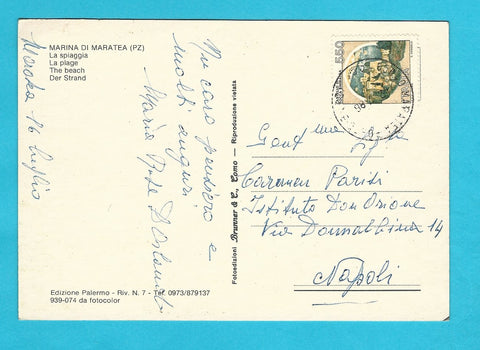 AK Marina di Maratea. La spiaggia. Gelaufen. Großformat. Nummeriert: 939-074. Zustand: rechtes oberes Eck und am oberen Rand in der rechten Hälfte geknickt, sonst O.k.
