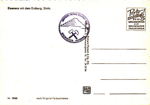 AK Eisenerz mit dem Erzberg. Ungelaufen. Großformat. Verlag: Pietsch. Nummeriert: 76495. Zustand: gut.