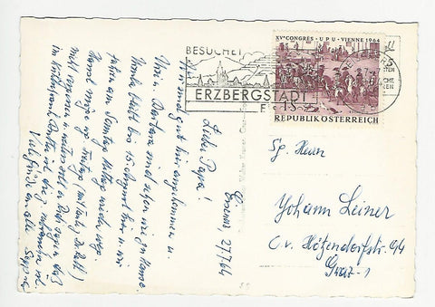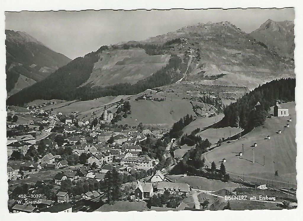 AK Eisenerz mit Erzberg. Gelaufen. Großformat. Verlag: Kramer. Nummeriert: 452-3037. Zustand: linkes unteres Eck geknickt, sonst gut.