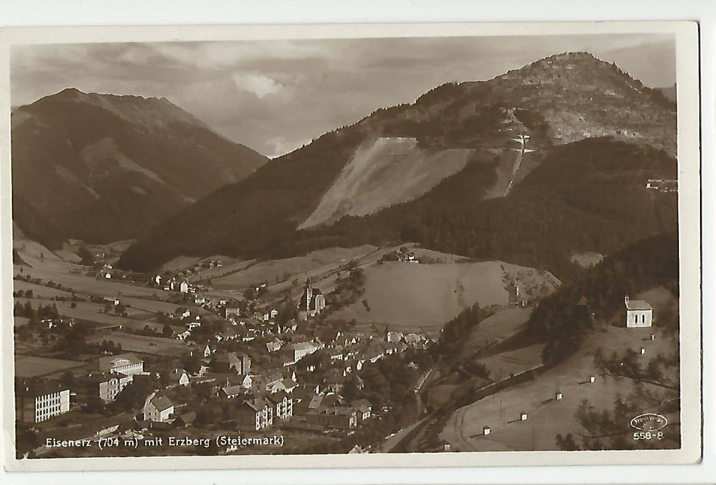 AK Eisenerz mit Erzberg. (1930-31) Gelaufen. Kleinformat. Verlag: Frank. Nummeriert: 558-8. Zustand: Knicke über dem linken unteren Eck, sonst O.k.