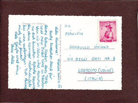 AK Eisenerz mit Erzberg. Ungelaufen, aber beschrieben 1957. Kleinformat. Verlag: Kramer. Nummeriert: 452-5035. Zustand: Knicke in oberer Bildhälfte.