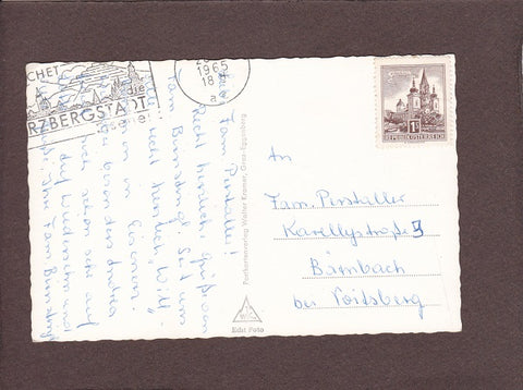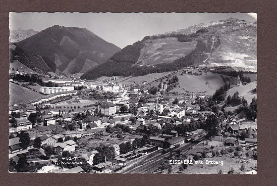 AK Eisenerz mit Erzberg. Gelaufen 1965. Kleinformat. Verlag: Kramer. Nummeriert: 452-11. Zustand: rechtes oberes Eck bestoßen und geknickt.