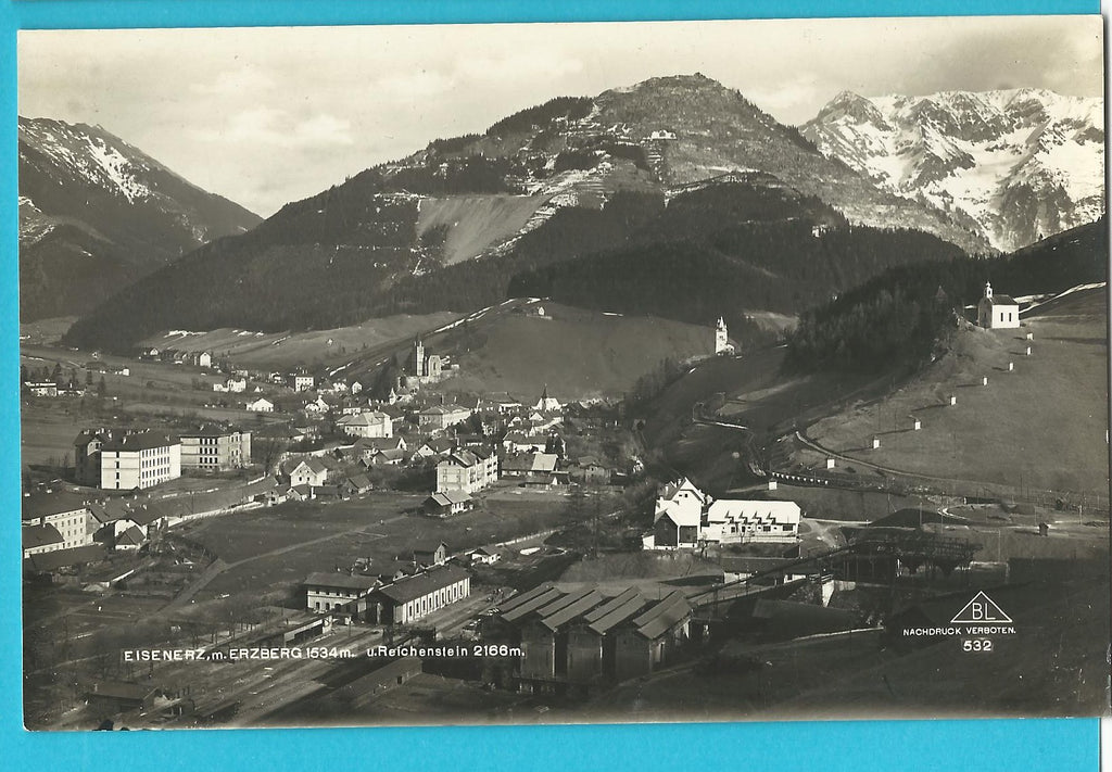 AK Eisenerz mit Erzberg und Reichenstein. (1929) Ungelaufen. Kleinformat. Verlag: Lenz. Nummeriert: 532. Zustand: gut.