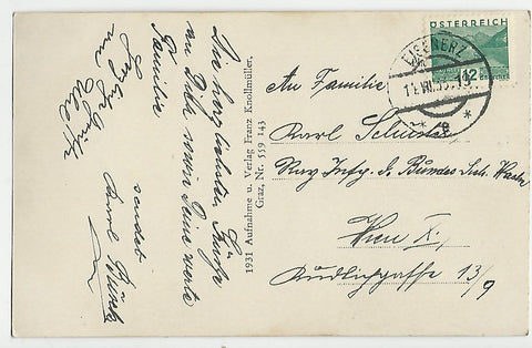 AK Eisenerz mit Pfaffenstein. (1931) Gelaufen. Kleinformat. Verlag: Knollmüller. Nummeriert: 559/143. Zustand: gut, wenig bestoßen.