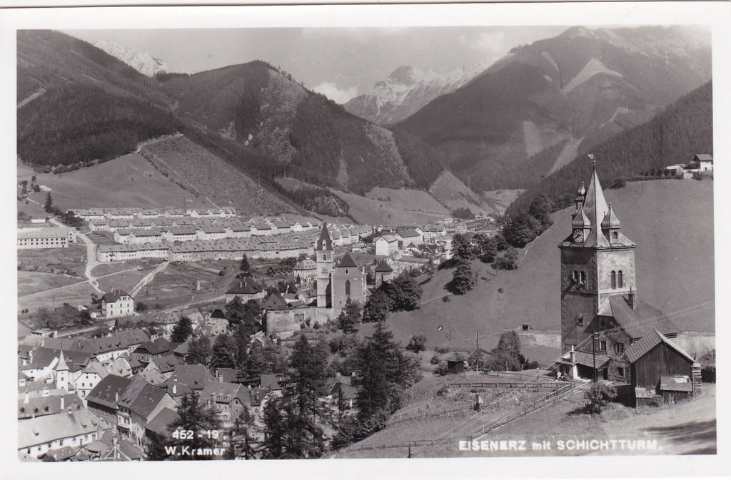AK Eisenerz mit Schichtturm. Ungelaufen. Kleinformat. Verlag: Kramer. Nummeriert: 452-19. Zustand: gut.