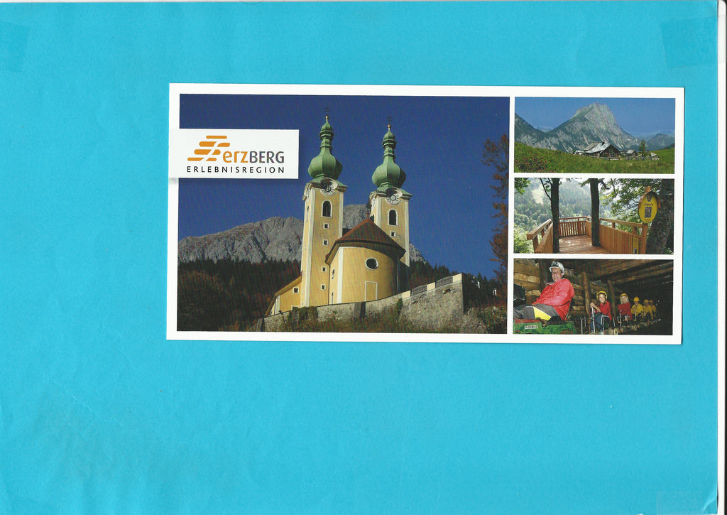AK Wallfahrtskirche Radmer. Seekaralm mit Lugauer. Habsburg-Meile. Kupferschaubergwerk. Format:21 x 10,5 cm. Zustand: gut.