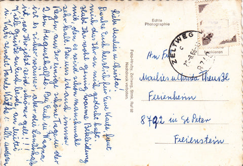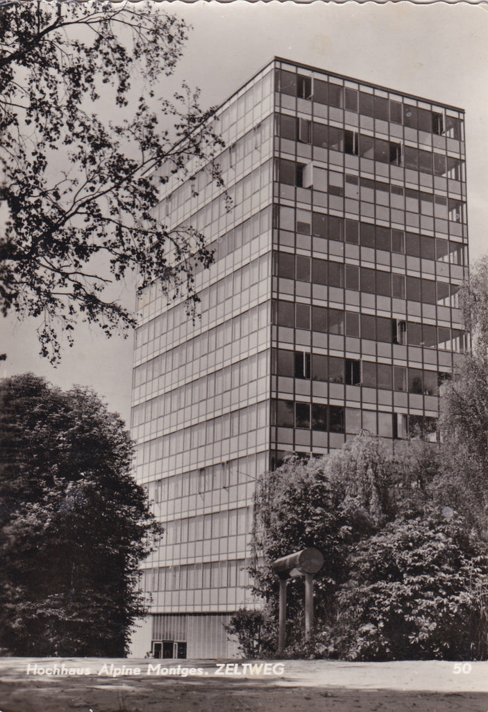 AK Zeltweg. Hochhaus Alpine Montges. Gelaufen, aber Briefmarke wurde entfernt. Großformat. Verlag: Hruby. Nummeriert: 50. Zustand: fleckig, sonst O.k.
