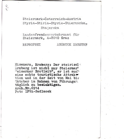Foto Erzberg. Format: 12,8 x 17,8 cm. Foto LFVA – Sedlacek. Arch. Nr. 6914. Zustand: gut.