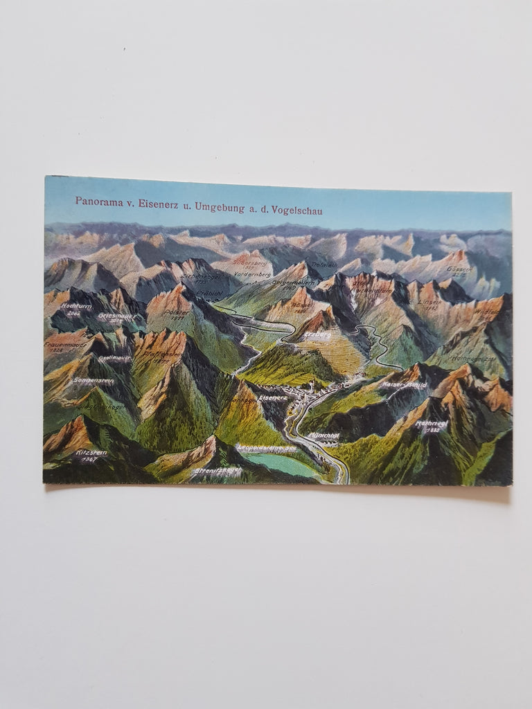 AK Panorama v. Eisenerz u. Umgebung a.d. Vogelschau. (1922)