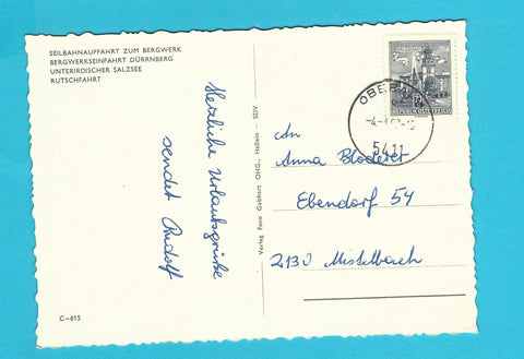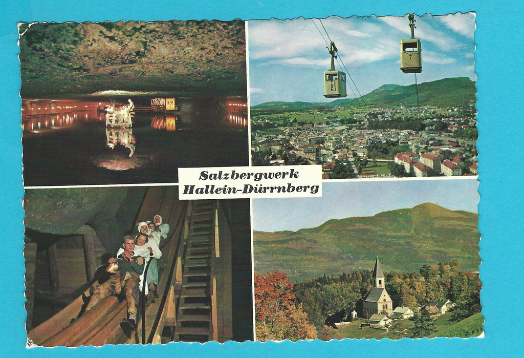 AK Salzbergwerk Hallein-Dürrnberg. Gelaufen. Großformat. Verlag: Gebhart. Nummeriert: C 615. Zustand: Knick über dem rechten oberen Bild, linke Ecken angeknickt.
