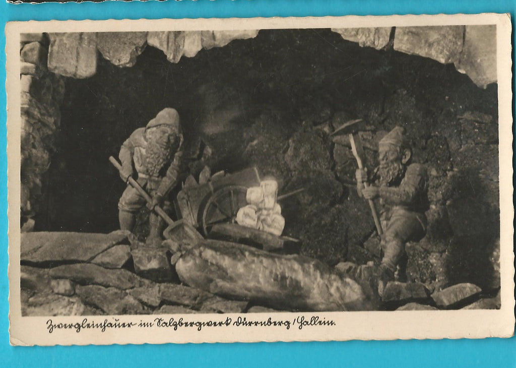 AK Zwergleinhauer im Salzbergwerk Dürrnberg/Hallein. Gelaufen, aber Briefmarke wurde entfernt. Kleinformat. Verlag: Gebhart. Zustand: leicht bestoßen.