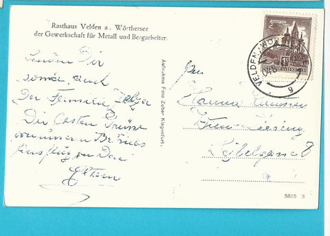 AK Rasthaus Velden am Wörthersee der Gewerkschaft für Metall und Bergarbeiter. Gelaufen. Kleinformat. Verlag: Zuber. Zustand: gut, am rechten Rand und rechtes unteres Eck leicht geknickt.