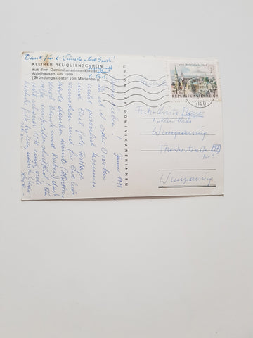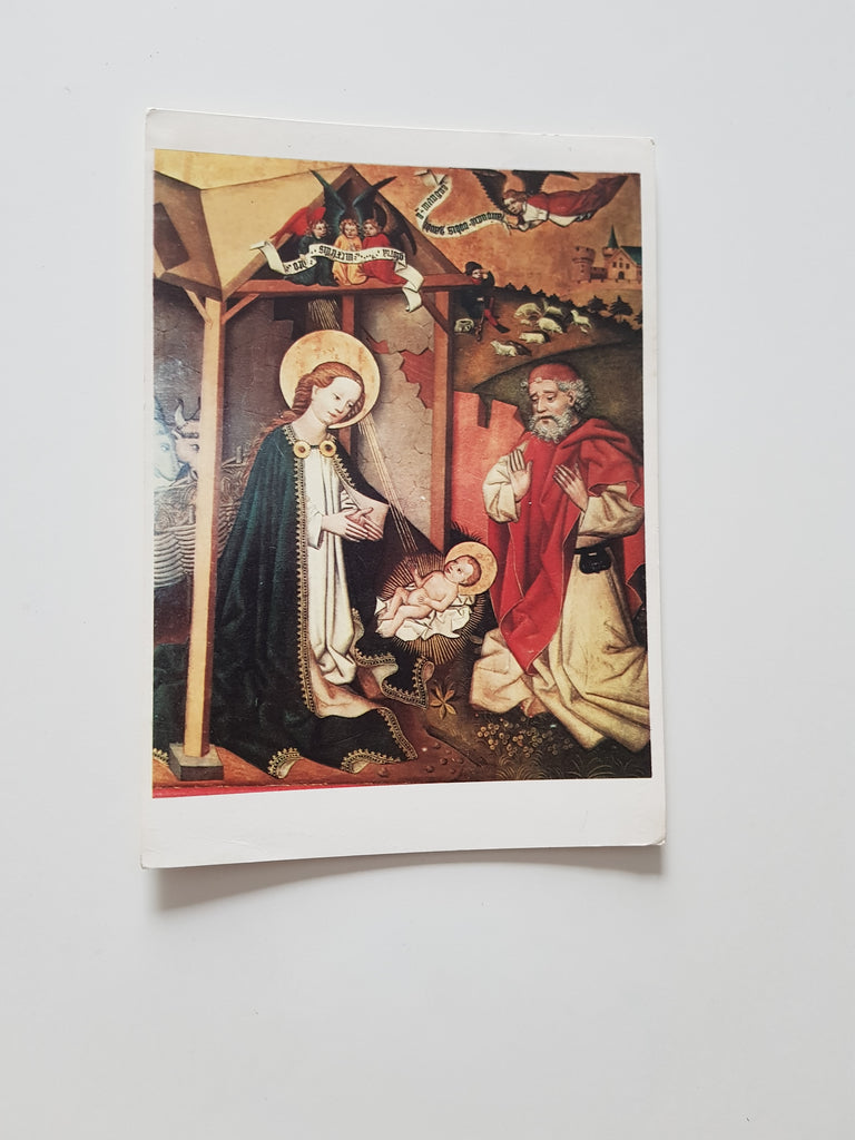 AK Geburt Christi. Kleiner Reliquienschrein aus dem Dominikanerinnenkloster Adelhausen. Gelaufen. Großformat. Zustand: gut, linkes unteres Eck geknickt.
