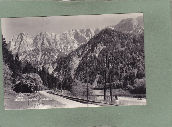 Ak Gesäuse, Johnsbach-Haltestelle. Ungelaufen. Kleinformat. Verlag: Brüder Lenz. 1935/36. Nummeriert: 2683. Zustand: gut. Bahnstrecke.