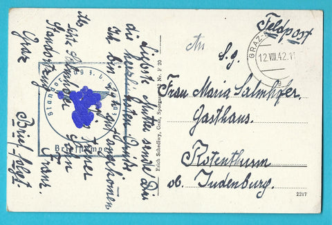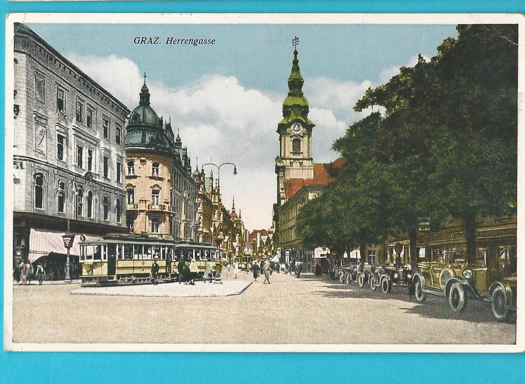 AK Graz Herrengasse. Gelaufen als Feldpost. Kleinformat. Verlag: Schediwy. Nummeriert: F 20. Zustand: obere Ecken geknickt.