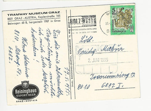 AK Graz. Tramway Museum Graz. Keplerstraße 105. Beiwagen 60 B. Gelaufen. Großformat. Verlag: Ragossnig. Zustand: leicht fleckig, wenig bestoßen.