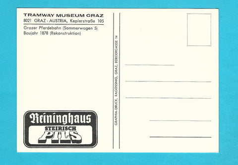 AK Graz. Tramway Museum. Grazer Pferdebahn. (vor dem Hauptbahnhof) Ungelaufen. Großformat. Verlag: Graphia-Druck, Ragossnig. Zustand: gut.
