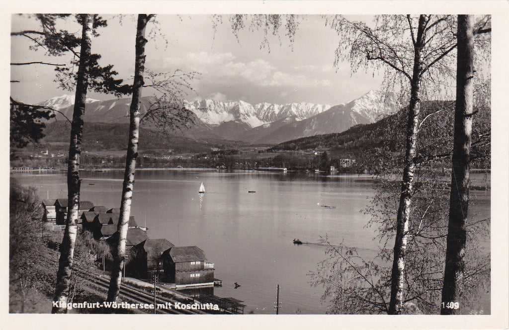 AK Klagenfurt-Wörthersee mit Koschutta. Ungelaufen. Kleinformat. Verlag: Schilcher. Nummeriert: 1409. Zustand: gut. links unten Bahnstrecke.