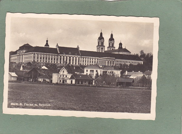 AK Markt St. Florian m. Bahnhof. Ungelaufen. Kleinformat. Verlag: Leitenmüller. Nummeriert: 2318. Zustand: gut, kleiner Knick oberhalb der Bildmitte.