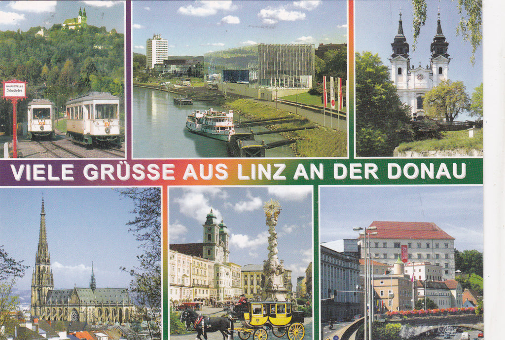 AK Viele Grüsse aus Linz an der Donau. Gelaufen. Großformat. Kellner. Nummeriert: R 4035. Zustand: Ecken leicht angeknickt, auf der Rückseite leicht bestoßen.