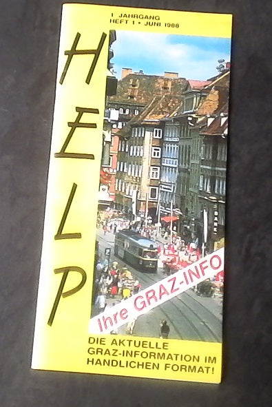 Broschüre: Help Ihre Graz Info. 1. Jahrgang Heft 1 Juni 1988. Mit zahlreichen Werbeanzeigen (auch mit Fotos). Zustand: gut.