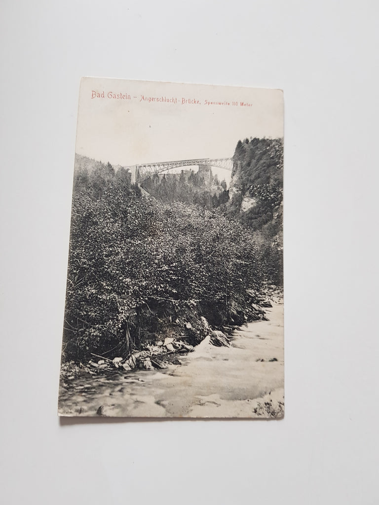 AK Bad Gastein. Angerschlucht-Brücke Spannweite 110 Meter. (1906) Ungelaufen. Kleinformat. Verlag: Stengel & Co. Nummeriert: 32601. Zustand: gut.