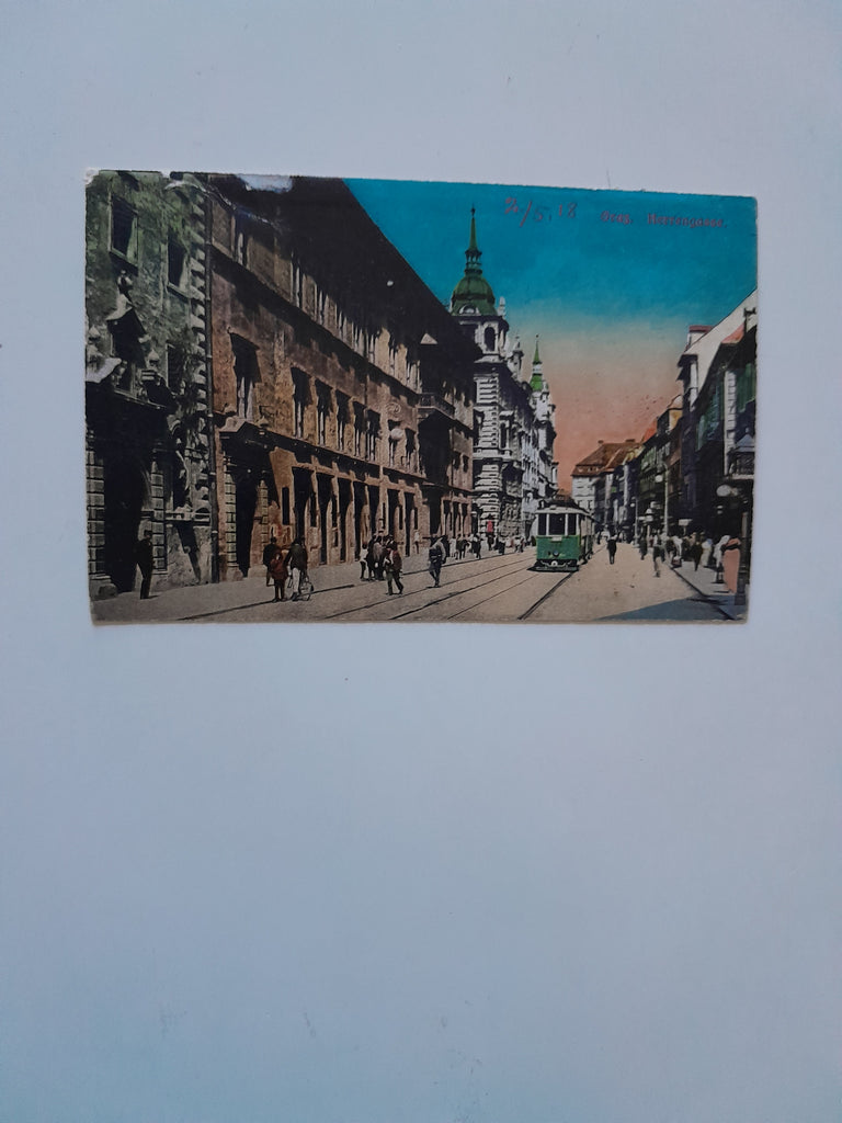 AK Graz. Herrengasse. Gelaufen, aber Briefmarke wurde entfernt. Kleinformat. Zustand: stärker bestoßen.