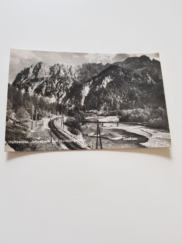 AK Haltestelle Johnsbach mit Hochtorgruppe. Ungelaufen. Kleinformat. Verlag: Ledermann. Nummeriert: 23790. Zustand: gut.
