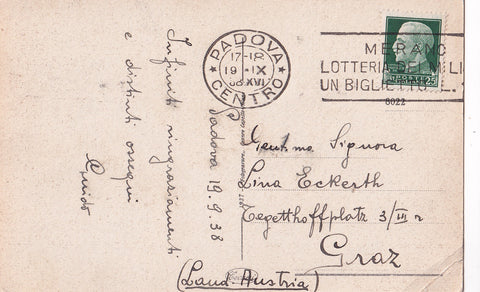 AK Padova. Stazione Ferroviaria. (1937) Gelaufen. Kleinformat. Zustand: linkes unteres Eck geknickt.