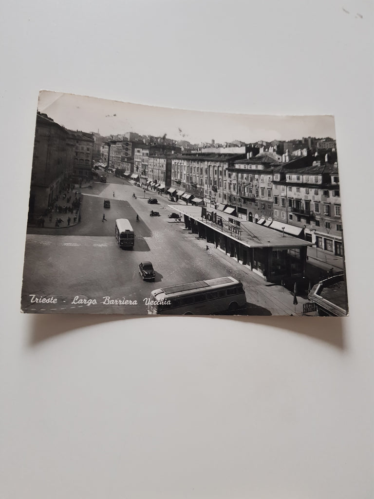 AK Trieste - Largo Barriera Vecchia. Gelaufen. Großformat. Zustand: linkes oberes Eck geknickt, sonst leichte Knicke.