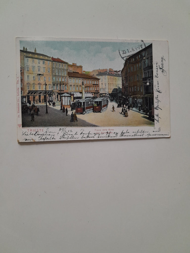 AK Trieste. Piazza della Borsa. Gelaufen. Kleinformat. Verlag: Trenkler & Co. Zustand: gut, linkes unteres Eck geknickt.