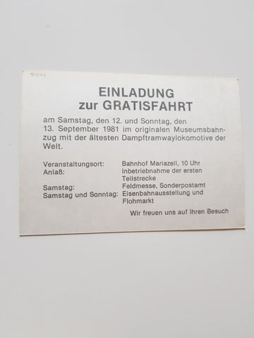 Werbe-AK Museumsbahn Mariazell-Erlaufsee.